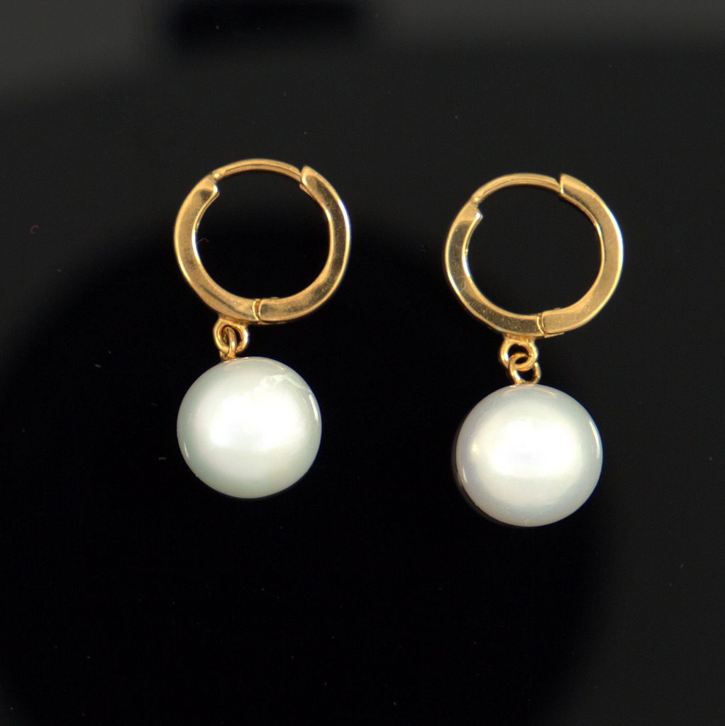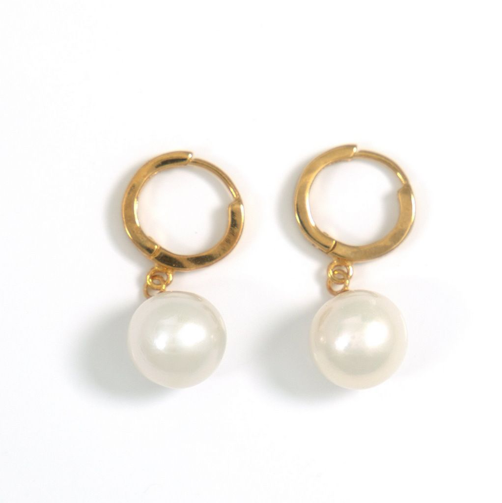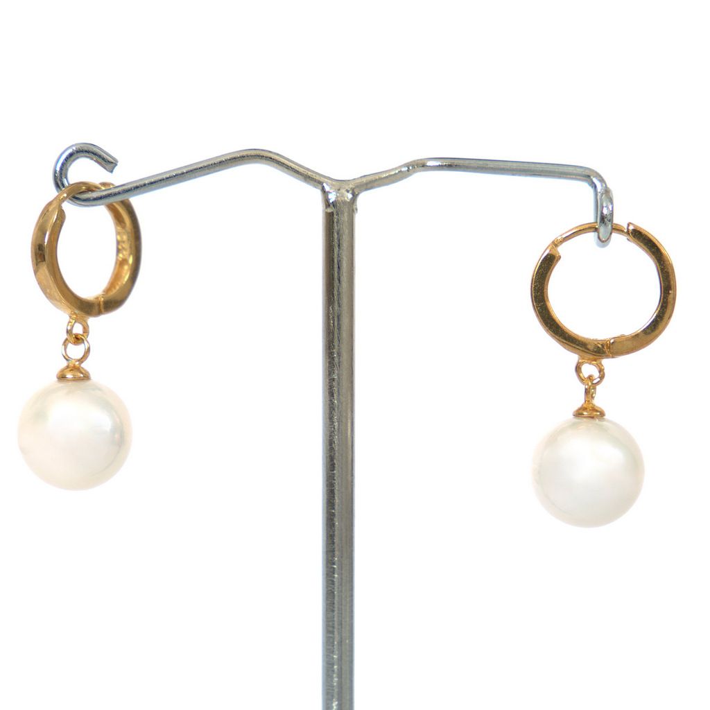 Perlen Kreolen mit 10,3mm runden Perlen in Weiß
